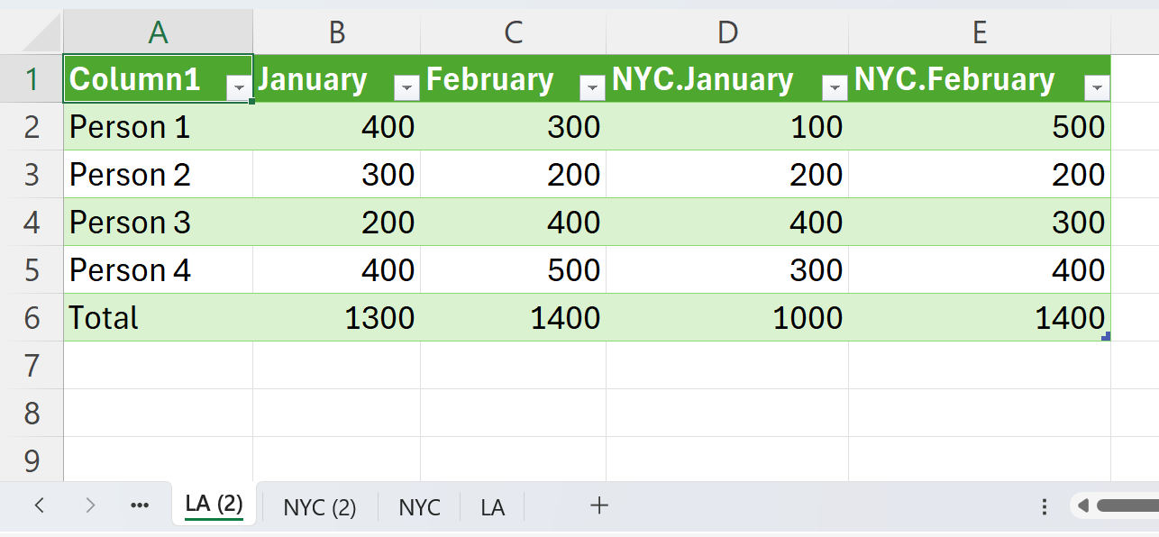 Fördelen med att kombinera data från olika kalkylblad är att du kan skapa nya Excel-tabeller för att arbeta med kund- eller företagsdata. Till skillnad från funktionerna för att slå samman celler och flytta celler kan du med funktionen Konsolidera eller Power Query Editor kombinera data från separata kalkylblad till ett enda kalkylblad.