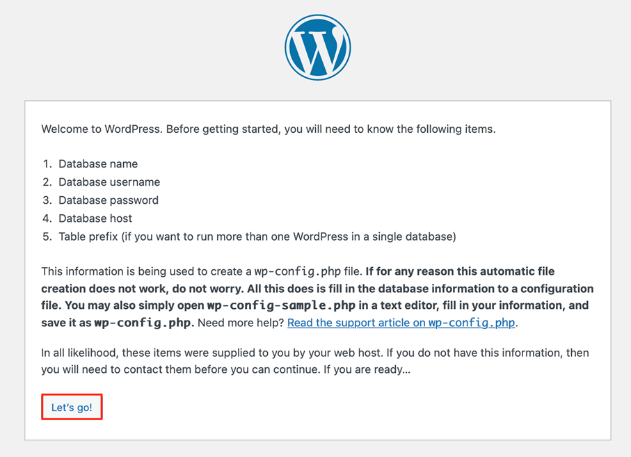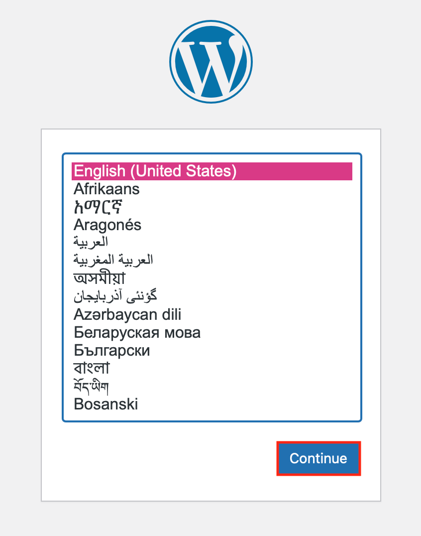För de sista installationsstegen måste du öppna WordPress-containern med en webbläsare.