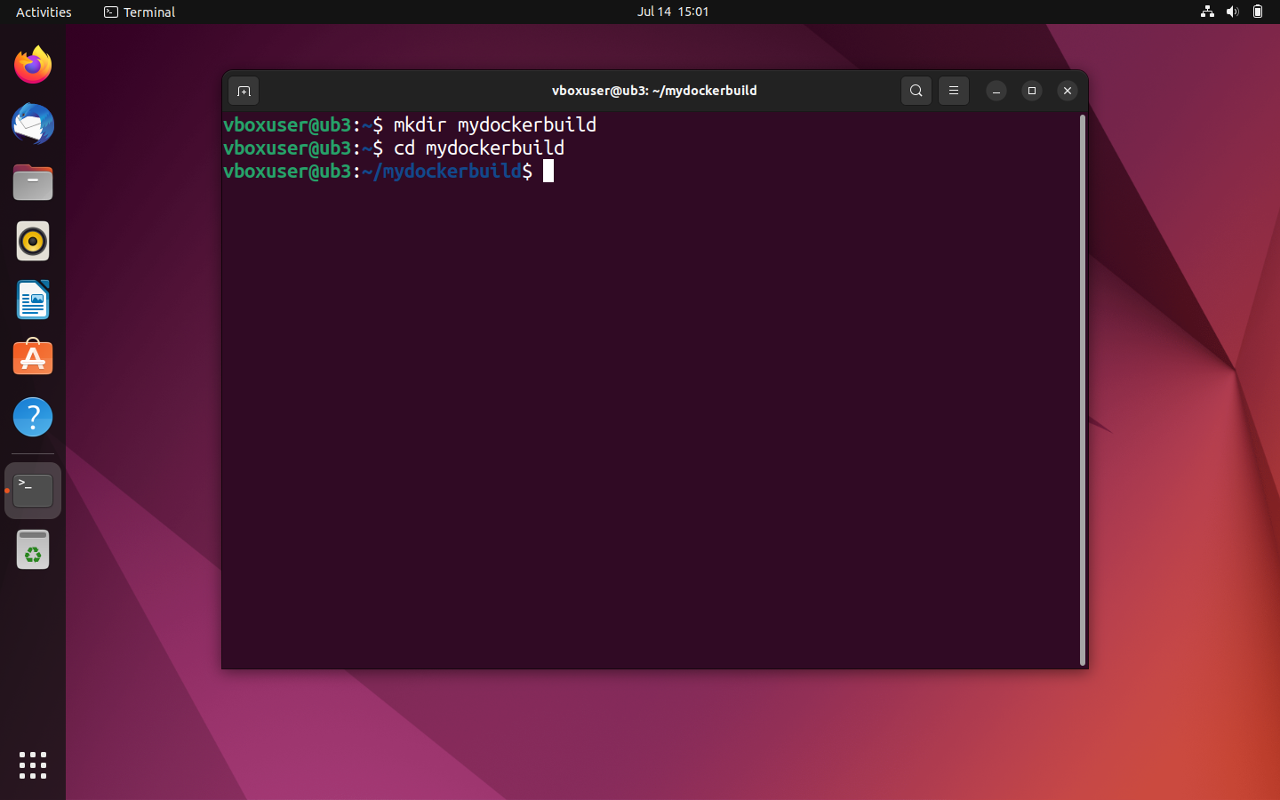 - Skapa ny textfil: Du kan också enkelt skapa textfiler via terminalen med Ubuntu. Använd en editor som Nano eller Vim för att göra detta. Skapa en textfil med namnet Dockerfile i katalogen mydockerbuild.