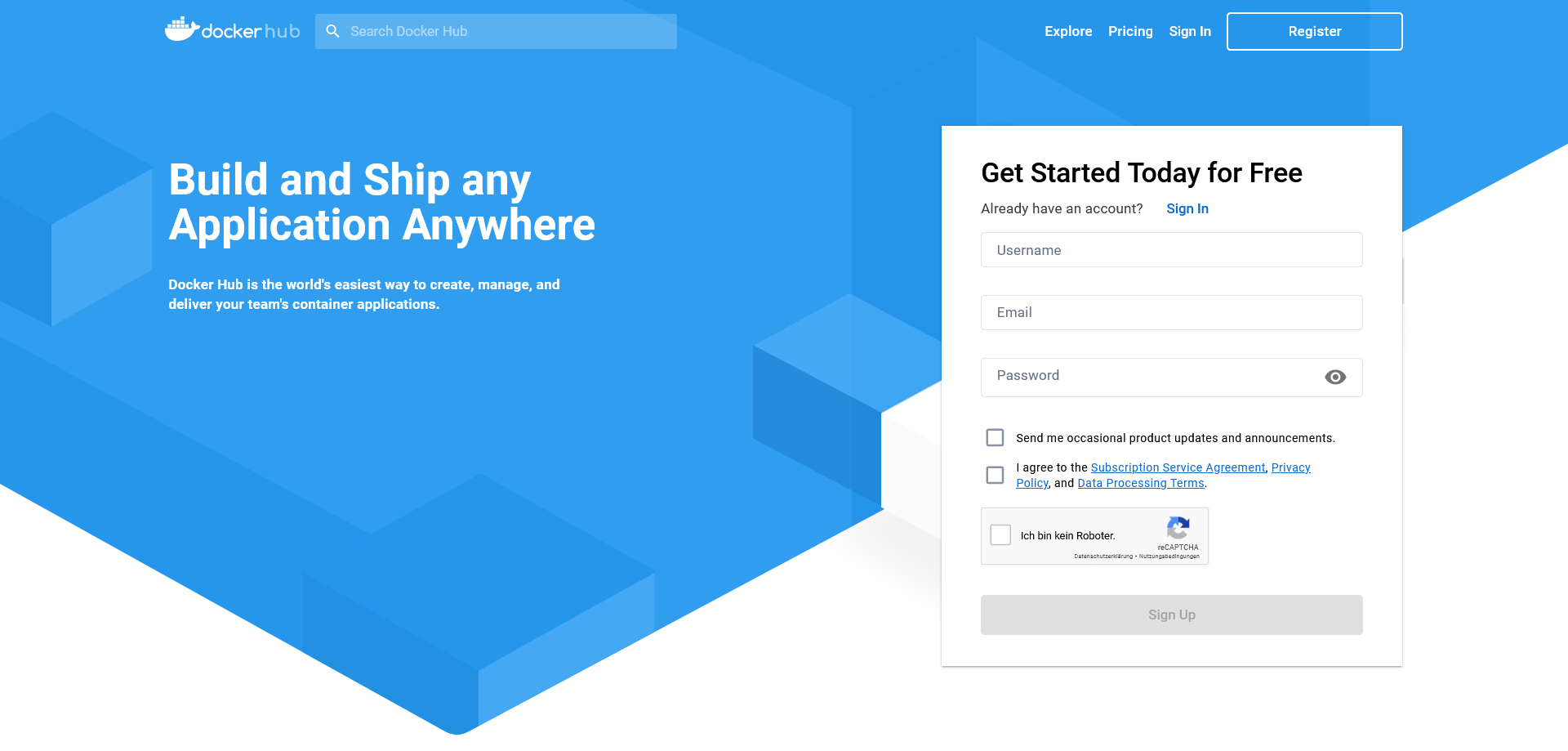 I princip är Docker Hub även tillgängligt för dem som inte har ett konto eller Docker-ID. I detta fall kan dock endast bilder från offentliga arkiv laddas. Det är inte möjligt att ladda upp (push) egna bilder utan ett Docker-ID.