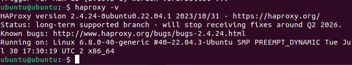 bashUtmatningen bör visa den installerade versionen av HAProxy.