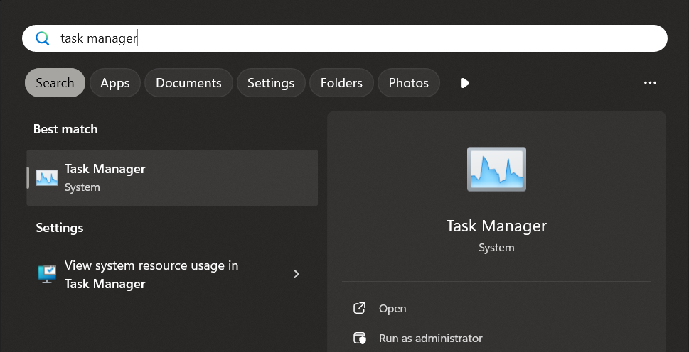 Aktivitetshanteraren visar en lista över aktiva program, tjänster och processer, samt ger en översikt över CPU- och RAM-användningen. Du kan öppna Windows-tjänsten med kortkommandot Ctrl + Skift + Esc. Håll dessa tre tangenter intryckta samtidigt för att öppna hanteringsgränssnittet. Alternativt kan du använda Windows Sök: skriv bara in ”Aktivitetshanteraren”.