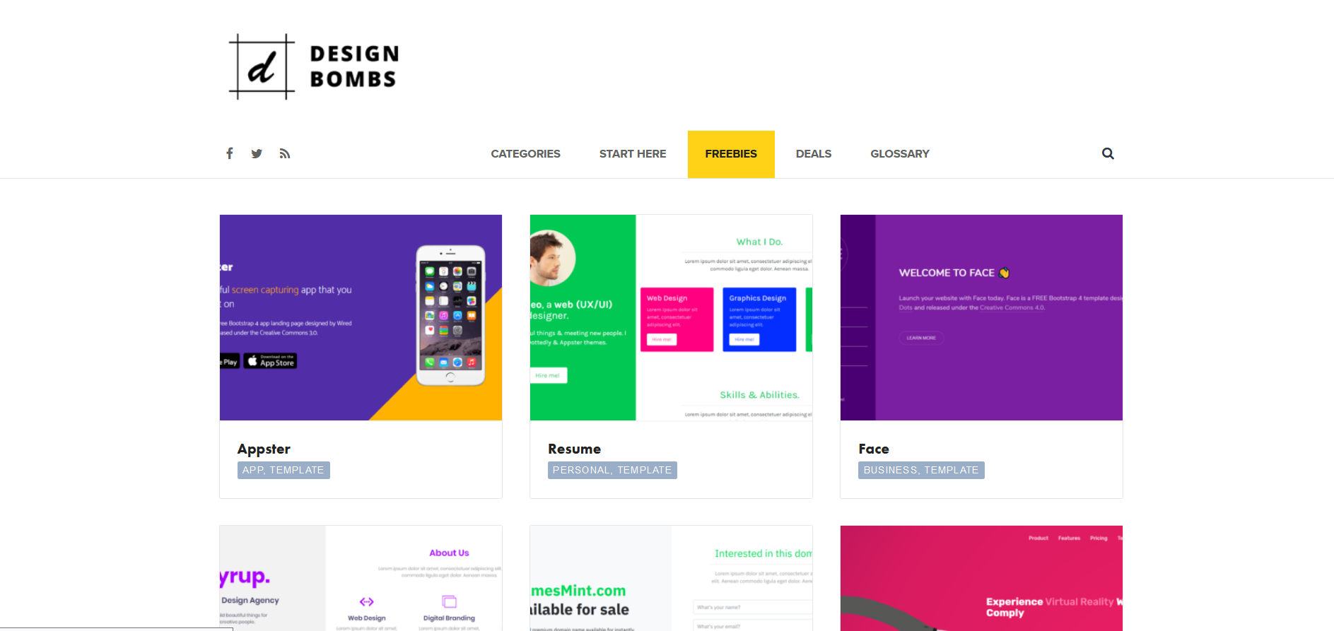 Design Bombs är inte en klassisk inspirationswebbplats som kopplar samman kreativa personer eller delar ut priser för innovativa webbdesignidéer. Det är snarare en källa till resurser och idéer. Som ett resultat av detta är mallarna de tillhandahåller ganska enkla och visar inte upp några nya standarder inom webbdesign.