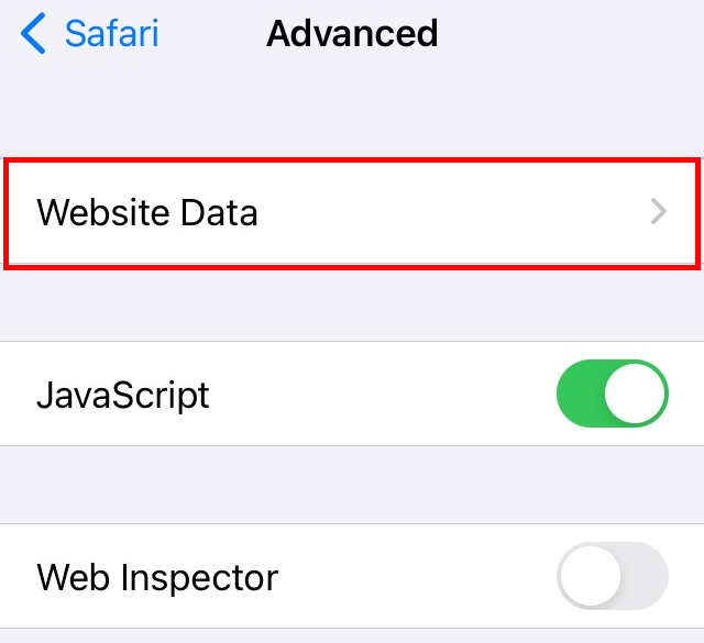 - Klicka på “Avancerat” och sedan på “Webbplatsdata”.